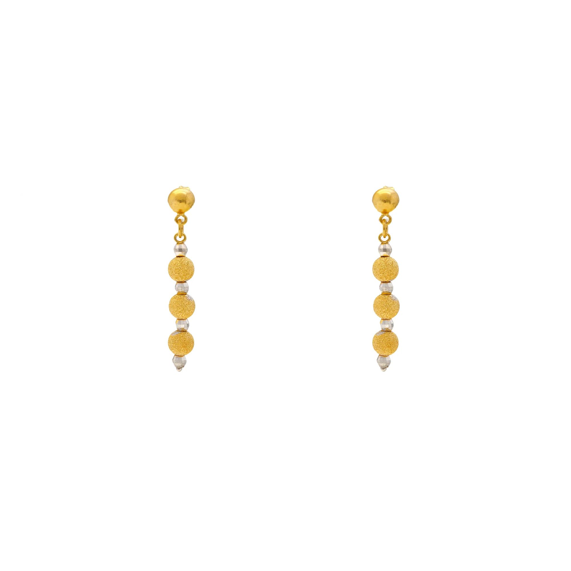 Wear this minimal 22k yellow and white gold beaded necklace and earring set when you want to bring a sense of simple sophistication to your outfit.